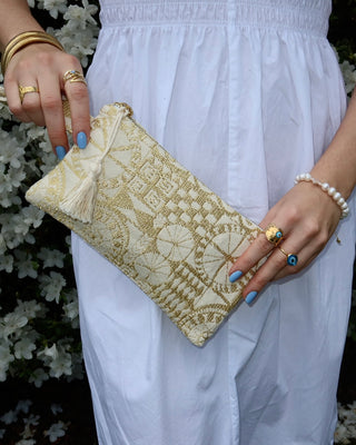 Our stunning range of handbags, tote bags, crossbody bags, and clutch bags are meticulously crafted in Greece by artisans using 100% cotton and using traditional looms.