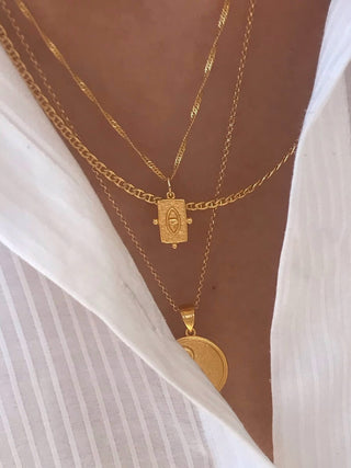 Gold-plated silver chain evil eye necklace made in Greece. Greek jewelry at Aegean Essence. Mati necklace.