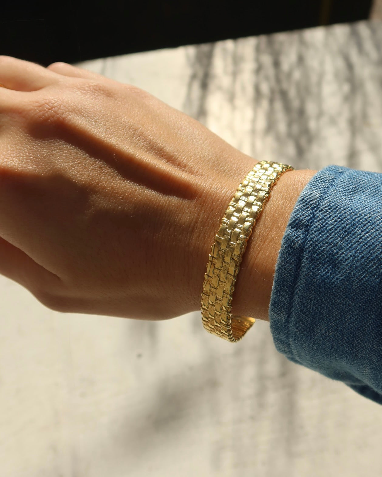 Handcrafted in Athens, Greece, this stunning cuff bracelet blends traditional craftsmanship with modern elegance. Made from gold-plated brass, it features a beautifully detailed basketweave design—a timeless pattern long associated with artistry, interconnectedness, and the beauty of handmade work. Each cuff bracelet is individually crafted by Greek artisans, giving it a warm, artisanal character that elevates any outfit and looks rich.